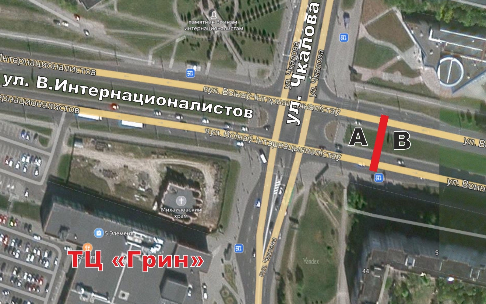 г. Витебск, пересечение ул. В. Интернационалистов и ул. Чкалова.
